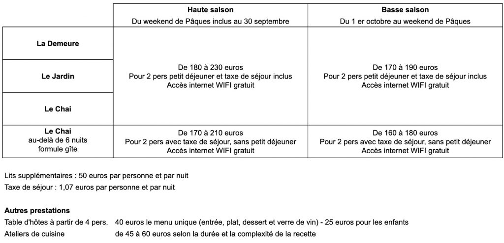 Pour plus de précisions sur nos tarifs et pour les séjours de longues durées ou les demandes spéciales, n’hésitez pas à nous contacter directement.